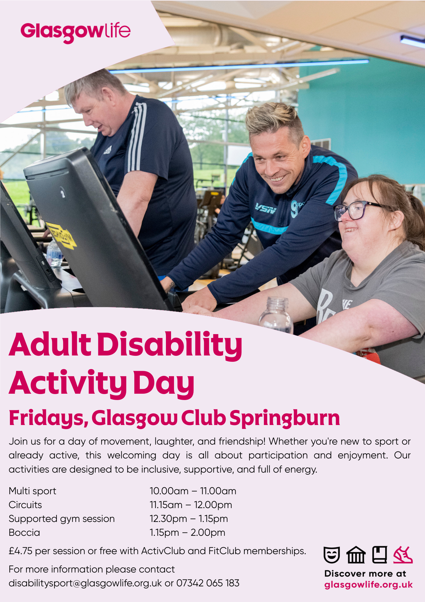 For more information on any of these sessions please contact disabilitysport@glasgowlife.org.uk or call 07342 065 183